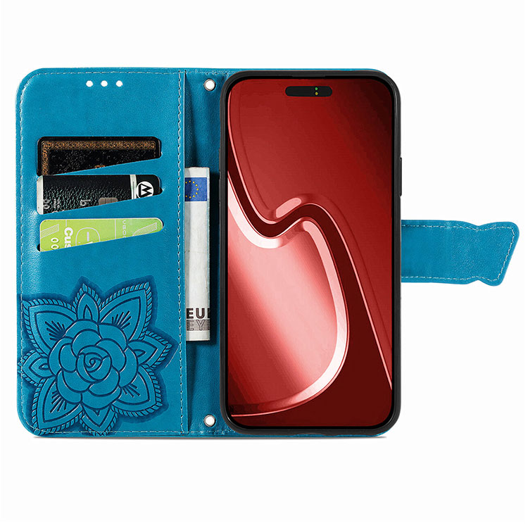 MAISIE Casebus Wallet Flip Phone Case, Emboss Butterfly Flower, Leather Protective Cover, with Wrist Strap & Crossbody Strap