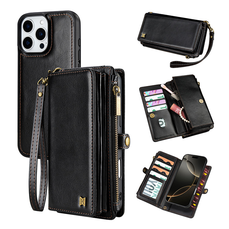 MONICA Casebus Detachable Wallet Phone Case, Magnetic Flip Zipper Cover, with Credit Card Holder & Wrist Strap