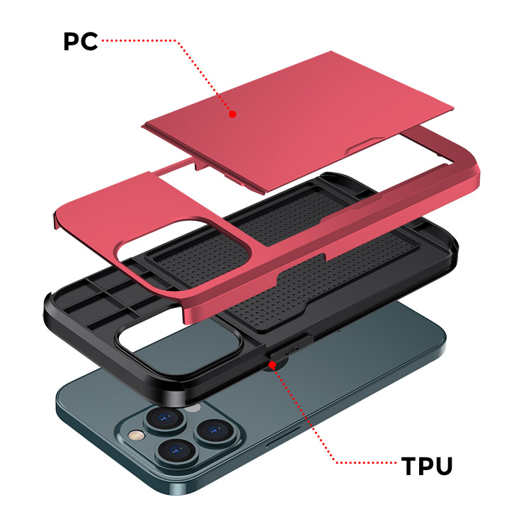 SHAREEF Casebus Classic Phone Case, with Credit Card Holder, Sliding Slot Heavy Duty Protection Dual Layer Armor Shell Cover