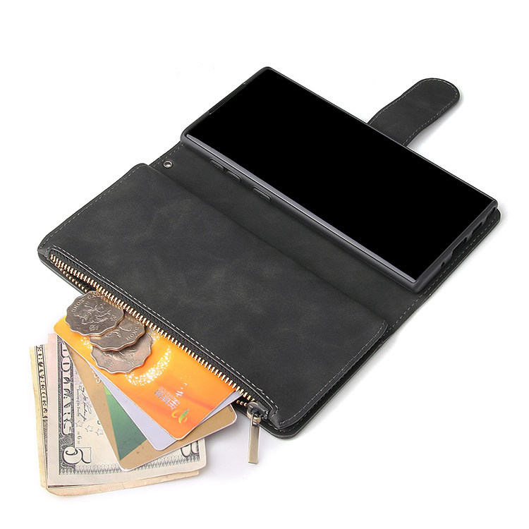 FLIPPER Casebus Classic Flipper Wallet Phone Case, Premium Retro Leather, Folio Zipper, Magnetic Closure, Stand Holder with Wrist Strap Shockproof Case