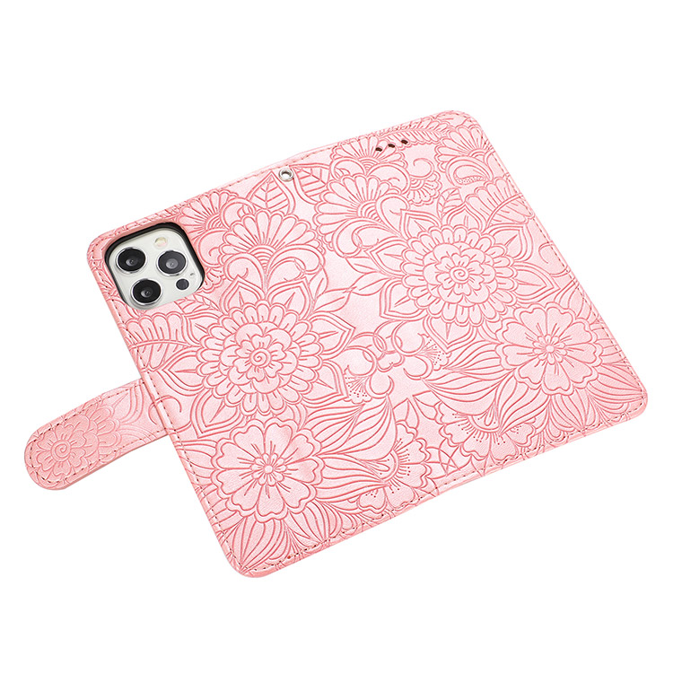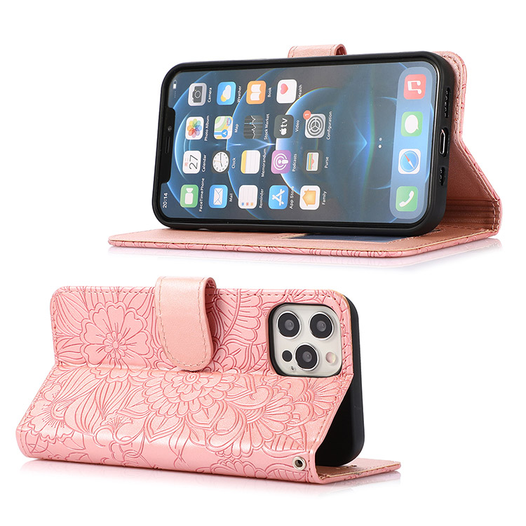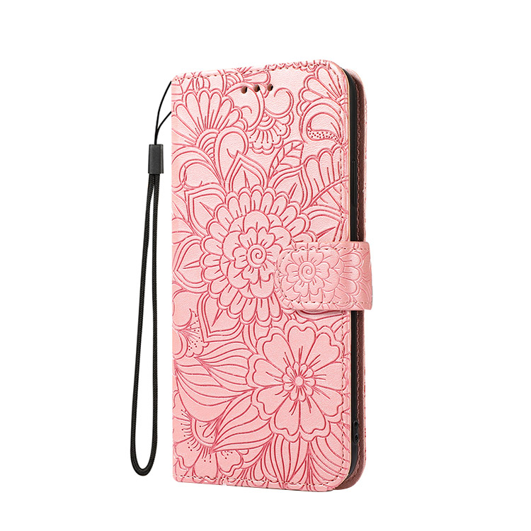 PENVRO Casebus Embossed Flower Flip Wallet Phone Case, with 3 Card Slots plus 1 Cash Pocket Lanyard Soft Leather Kickstand Protective Case