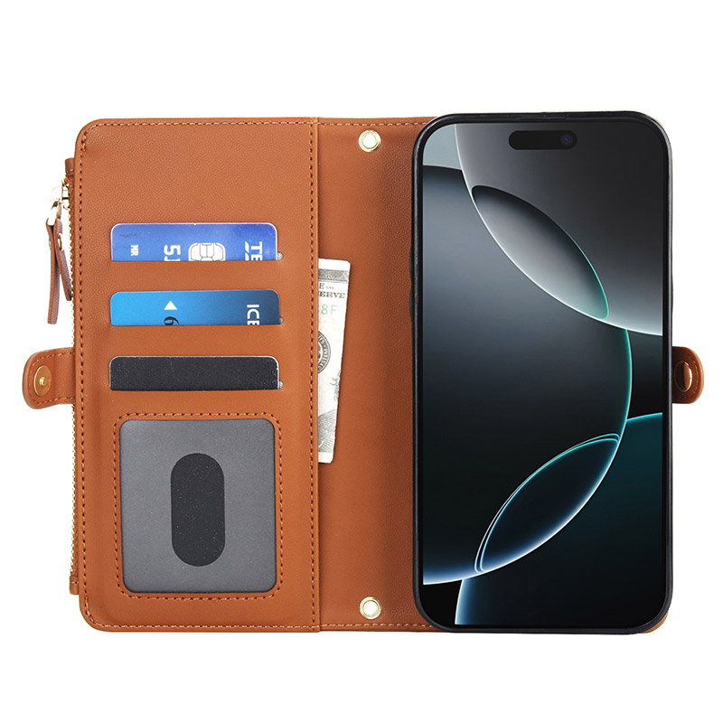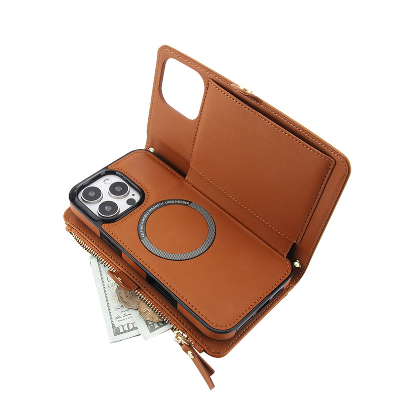 Casebus Classic Crossbody Wallet Phone Case, Premium Leather, Credit Card Holder, Zipper Pocket Purse Handbag, Kickstand Shockproof Case