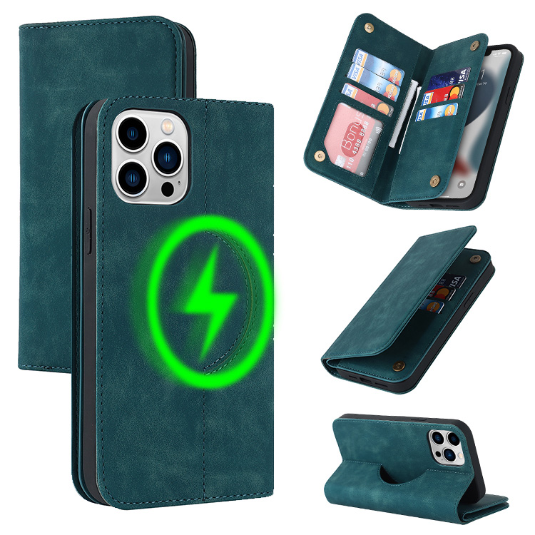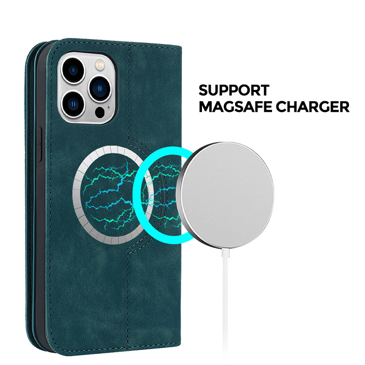 [Support Magsafe Charging] The magnetic wallet case with built-in magnets circle can automatically align with mag-safe charger, 360-degree rotation magnetic fast charge without removing the case.