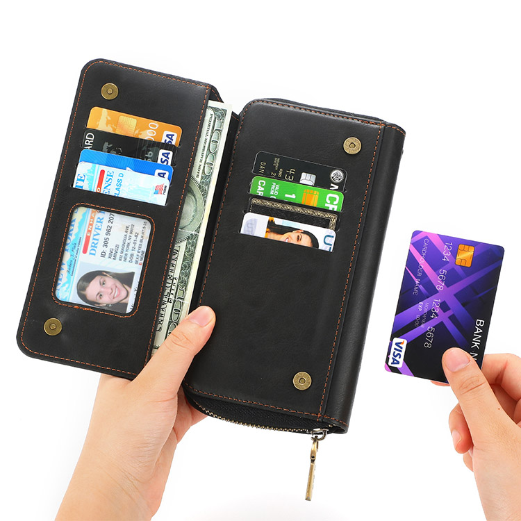 Casebus Classic Detachable Magnetic Wallet Phone Case, 11 Card Slots, 2 in 1, Leather Zipper, Folio Flip, Money Pocket Clutch Case
