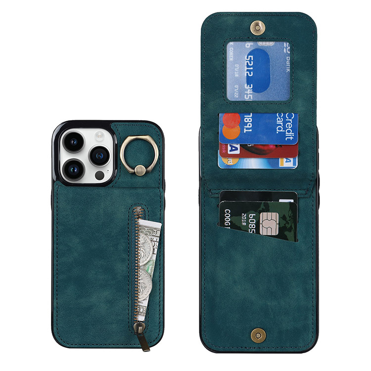 OMER Casebus Wallet Phone Case, Ring Holder, Credit Card Slots, Zipper Pocket, Premium Leather Purse, Shockproof Cover