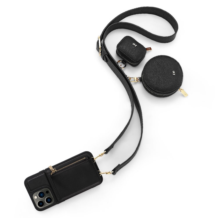 NOELLE - WIDE STRAP - 3PCS SET Includes: Casebus Wallet Case *1, Round Pouch *1, Mini Pouch *1, Adjustable Wide Strap *1 (Width: 1.18'')