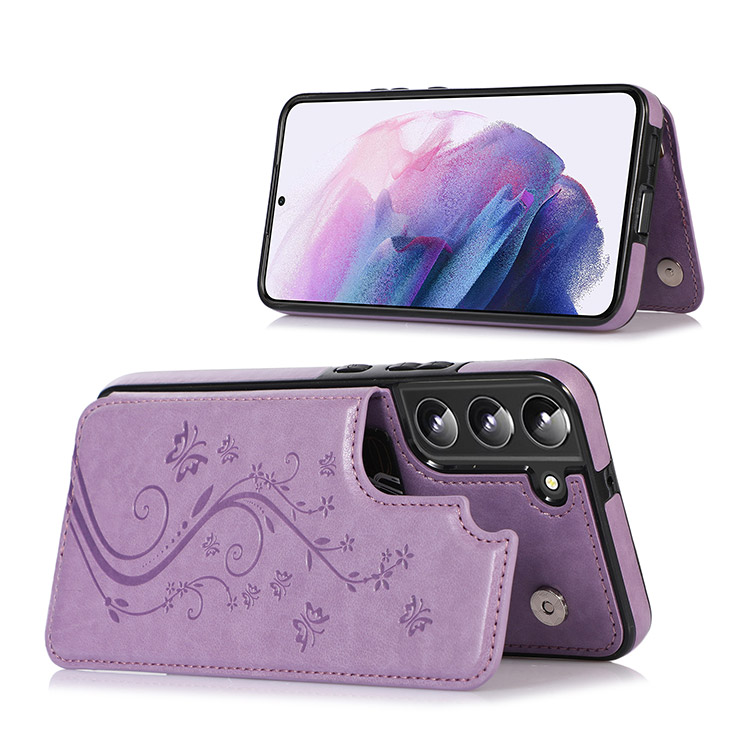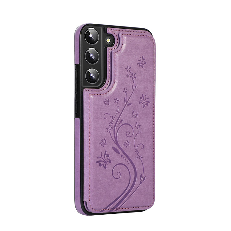 SOMMER Casebus Classic Buckle Wallet Phone Case, Embossed Flower, Credit Card Holder, Leather, Kickstand, Double Magnetic Clasp, Shockproof Case