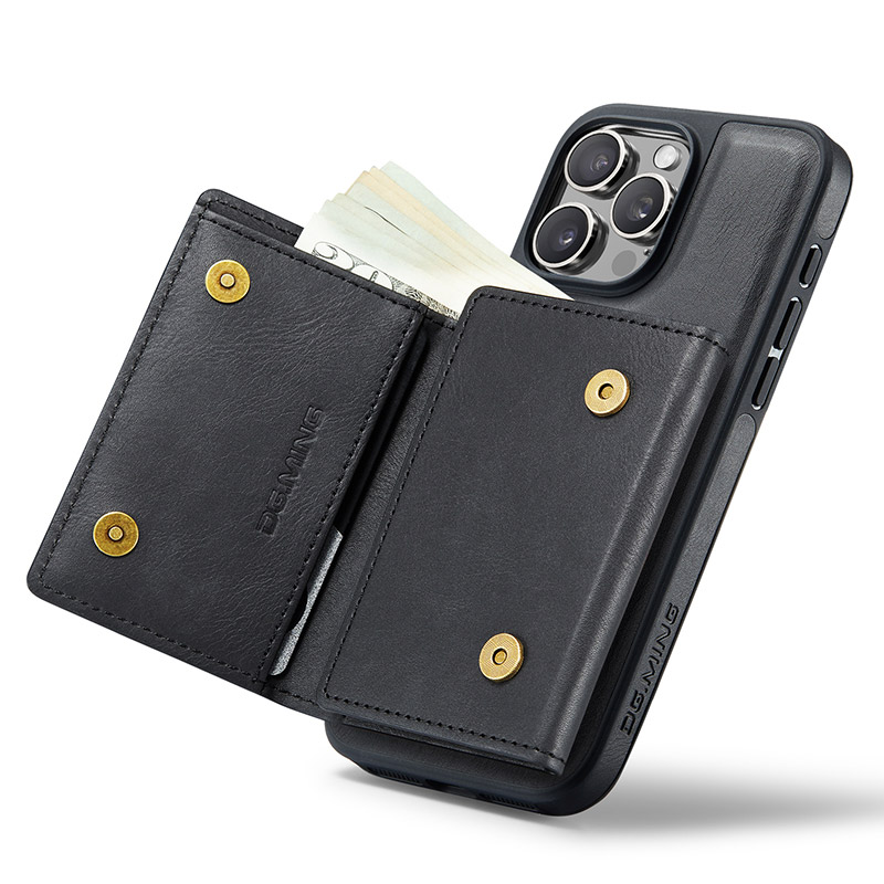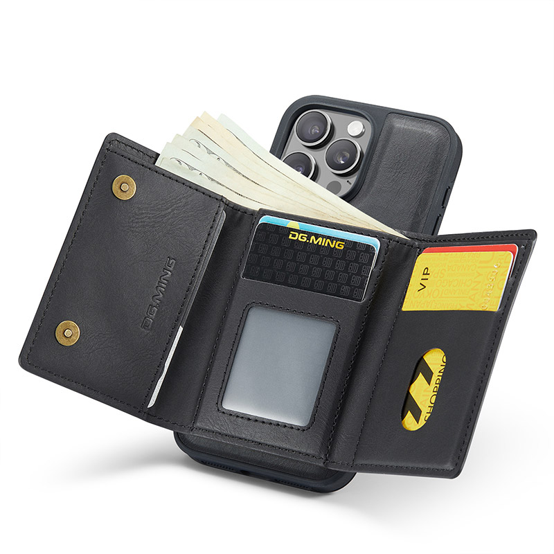 [Detachable Magnetic Card Holder] With strong magnetism the phone case and card holder adhere to each other and are detachable. The design provides 6 card slots + 2 side pockets + 1 large bill page, Using RFID Blocking materials and preventing unauthorized scanners from protecting your card information.
