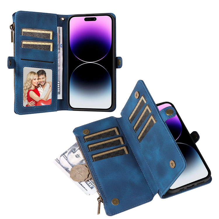 Casebus Multi Functional Wallet Phone Case, 14 Card Slots 3 Purse 1 Zipper 1 Wrist Band 1 Metal Buckle, Wrist Strap Clutch Magnetic Detachable