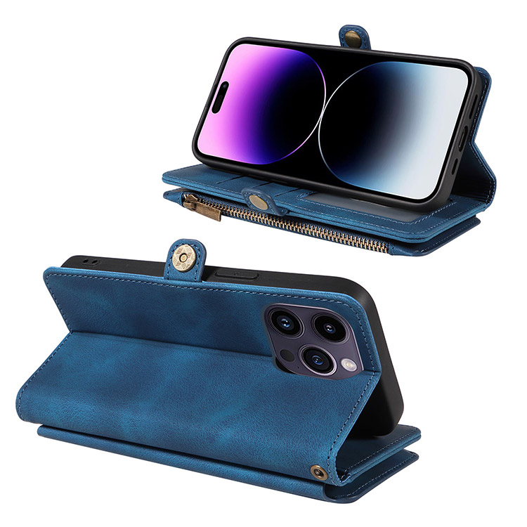 Casebus Classic Flipper Wallet Phone Case, Premium Retro Leather, Folio Zipper, Magnetic Closure, Stand Holder with Wrist Strap Shockproof Case