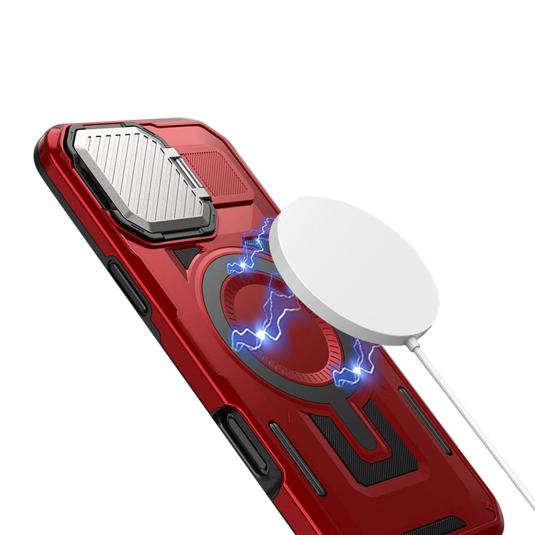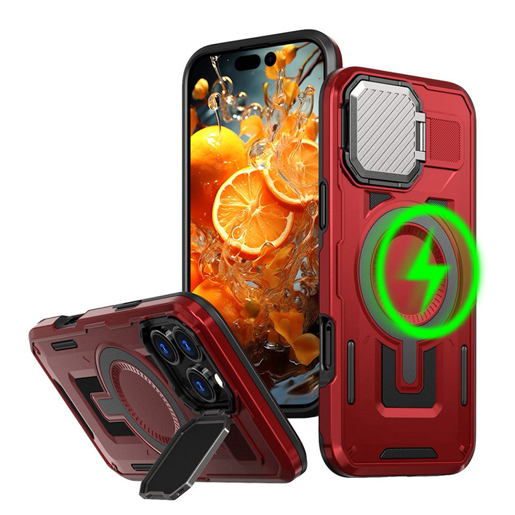 HOLLIS Casebus Heavy Duty Phone Case, Support Magsafe, with Built in Metal Lens Cover Stand, Military Grade Shockproof Protective Cover