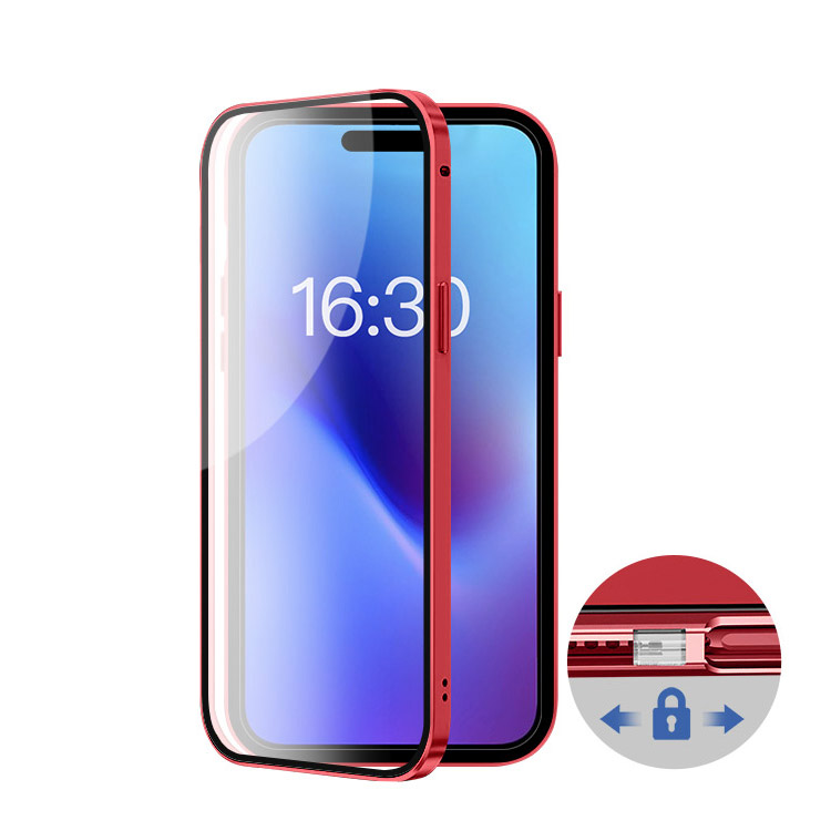 HAMLIN Casebus Double Sided HD Clear Phone Case with Safety Lock, Built in Screen Protector Metal Bumper Frame 360 Full Protective Cover
