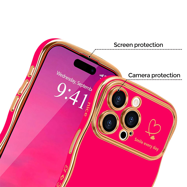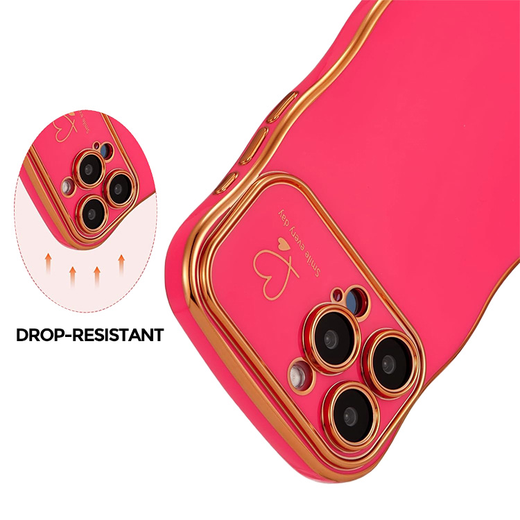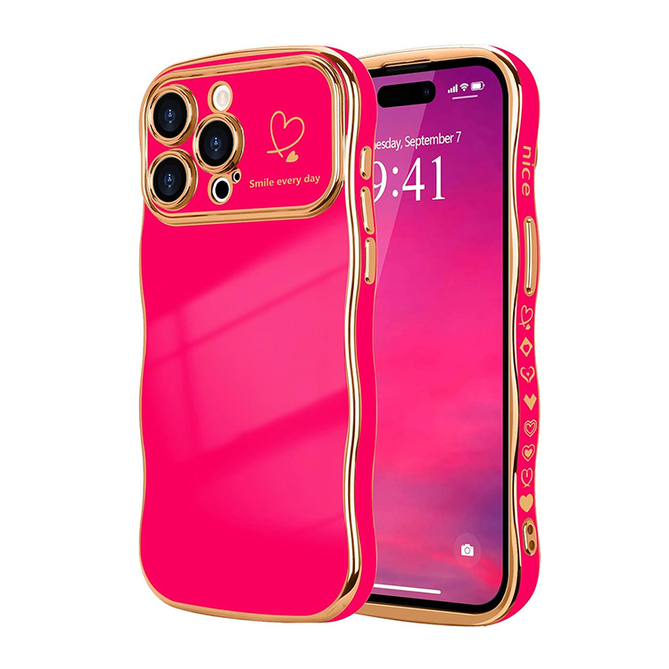 JENNIFER Casebus Luxury Plating Phone Case, Heart Wave Shaped Curled Edge Design, Shockproof Protective Cover