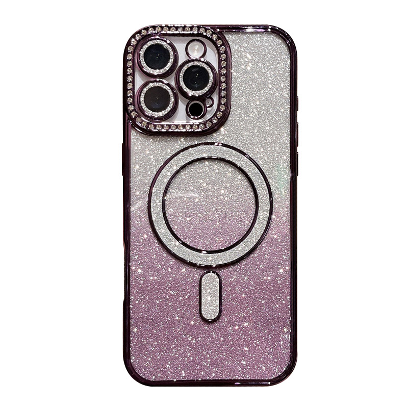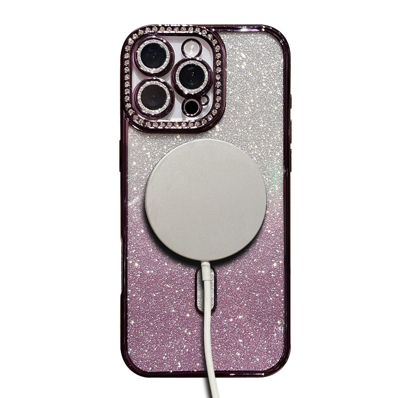 CECILIA Casebus Magnetic Glitter Phone Case, Support Magsafe, Shockproof Protective Cover, with Camera Lens Protector