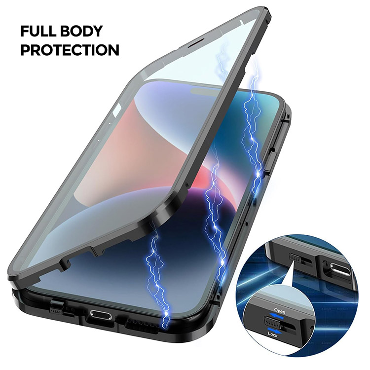 [Magnetic adsorption] The protective case adopts magnetic technology. The metal frame built-in magnet point surrounds the glass case. So the metal frame is automatically absorbed when it is close to the casing of the mobile phone.Easy to install.