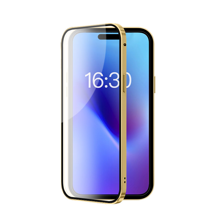 MAYNARD Casebus Double Sided HD Clear Magnetic Phone Case, Built in Screen Protector Metal Bumper Frame 360 Full Protective Cover