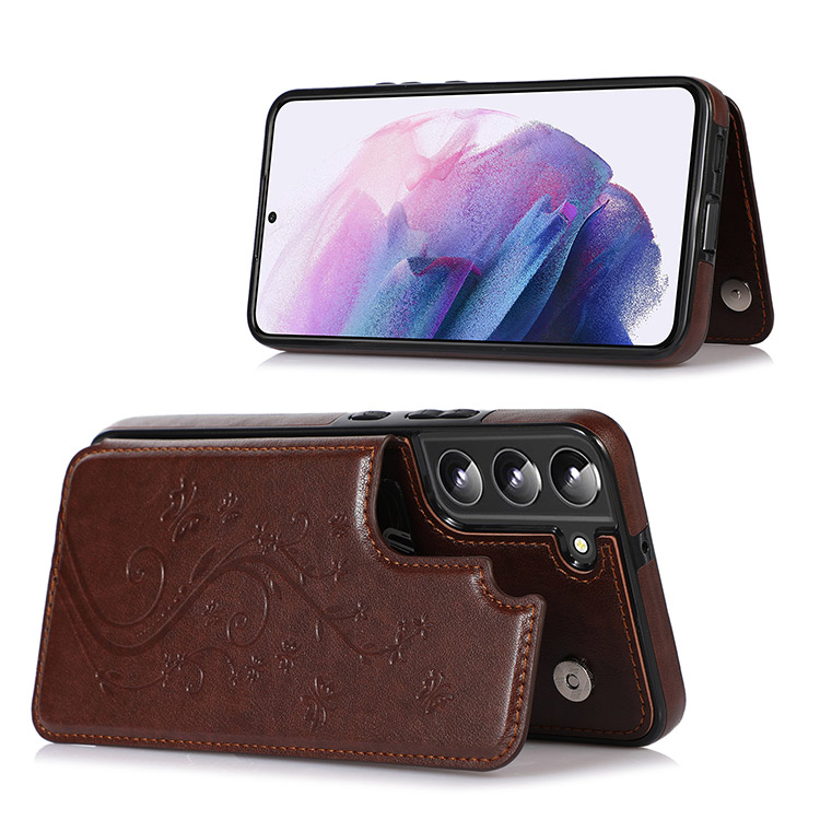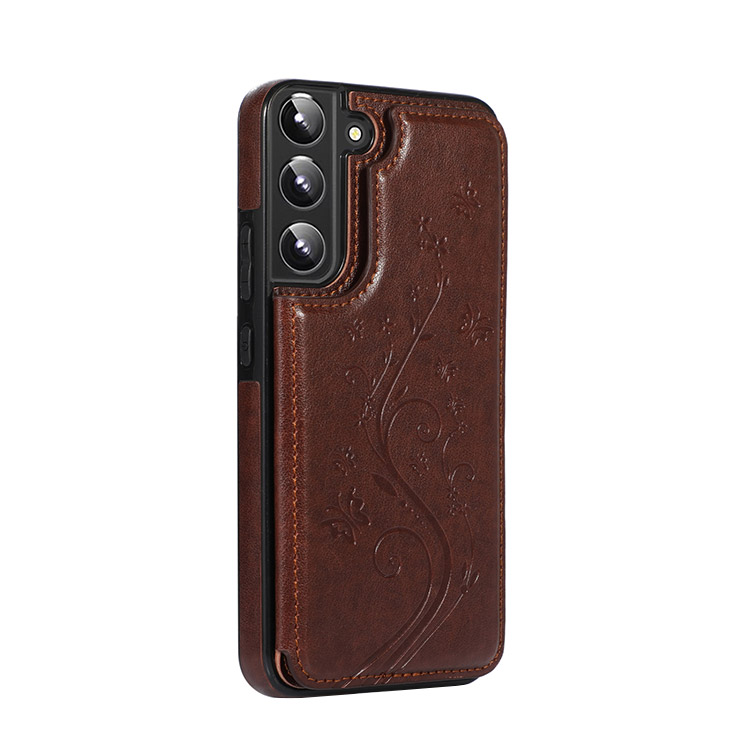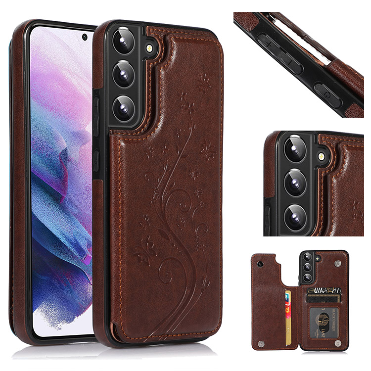 SOMMER Casebus Classic Buckle Wallet Phone Case, Embossed Flower, Credit Card Holder, Leather, Kickstand, Double Magnetic Clasp, Shockproof Case