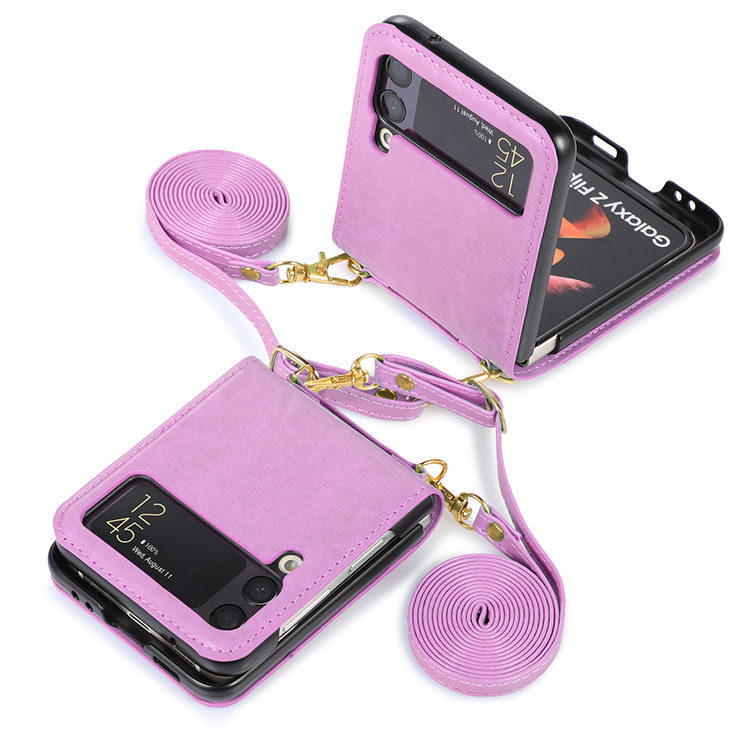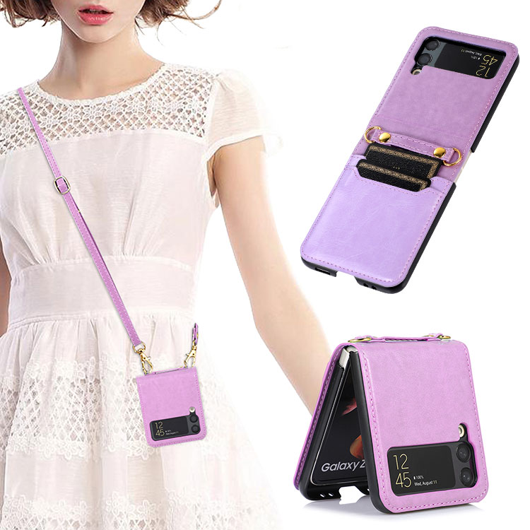 WILMETH Casebus Crossbody Wallet Case for Samsung Galaxy Z Flip, With Card Slots Premium Leather Lanyard Slim Cover