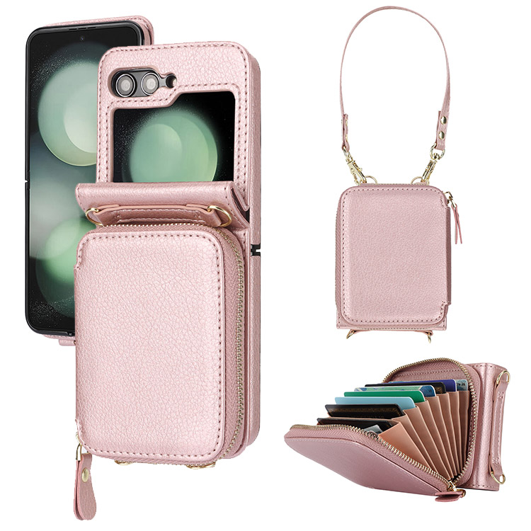 Casebus Flip Crossbody Wallet Case, Leather Zipper Purse, with Wrist Strap & Shoulder Strap