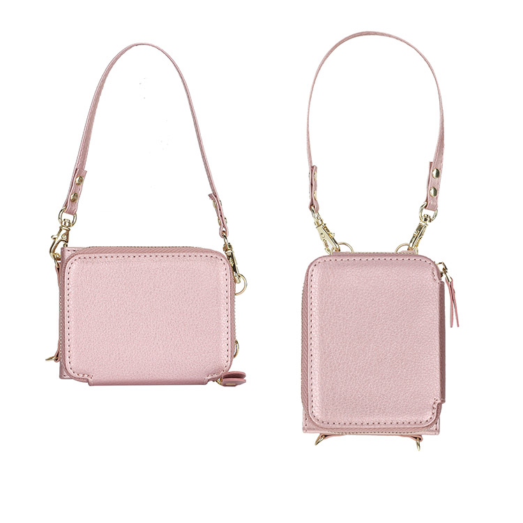 This crossbody is so compact it can be worn as an accessory or as a mini-purse 'hide-away' for flip phone. Another unique feature I found with this product is the detachable strap. When product is not being worn in crossbody mode, it can easily convert to a wallet.