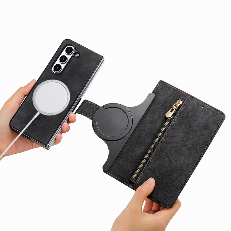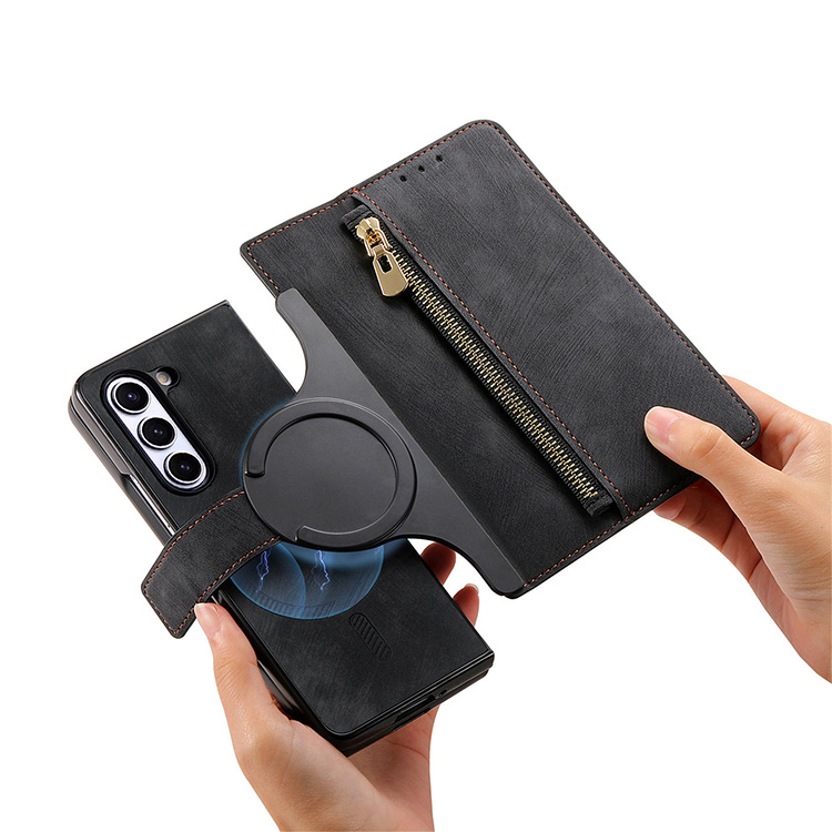ELLIS Casebus Retro Magnetic Zipper Wallet Case, Support Magsafe, Detachable Folio Flip Leather Cover, with Card Slots