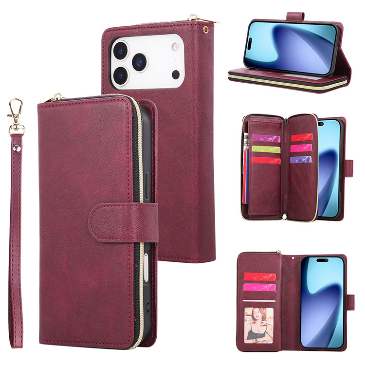 Casebus Classic Flipper Wallet Phone Case, Premium Retro Leather, Folio Zipper, Magnetic Closure, Stand Holder with Wrist Strap Shockproof Case