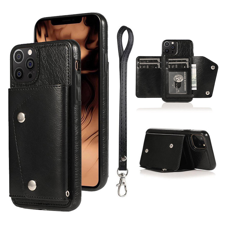 Casebus Crossbody Wallet Phone Case, With Detachable Strap Lanyard Magnetic Closure Credit Card Holder Leather Kickstand Shockproof Cover