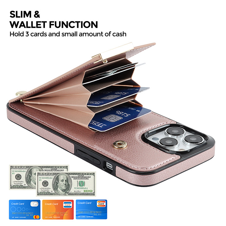 Casebus Classic Crossbody Wallet Phone Case, Premium Leather, Credit Card Holder, Zipper Pocket Purse Handbag, Kickstand Shockproof Case