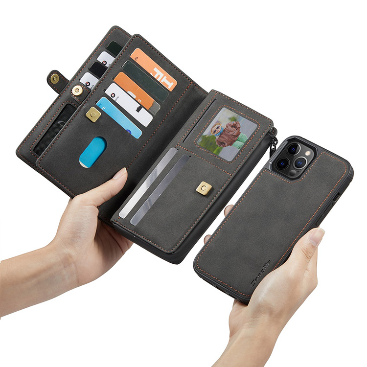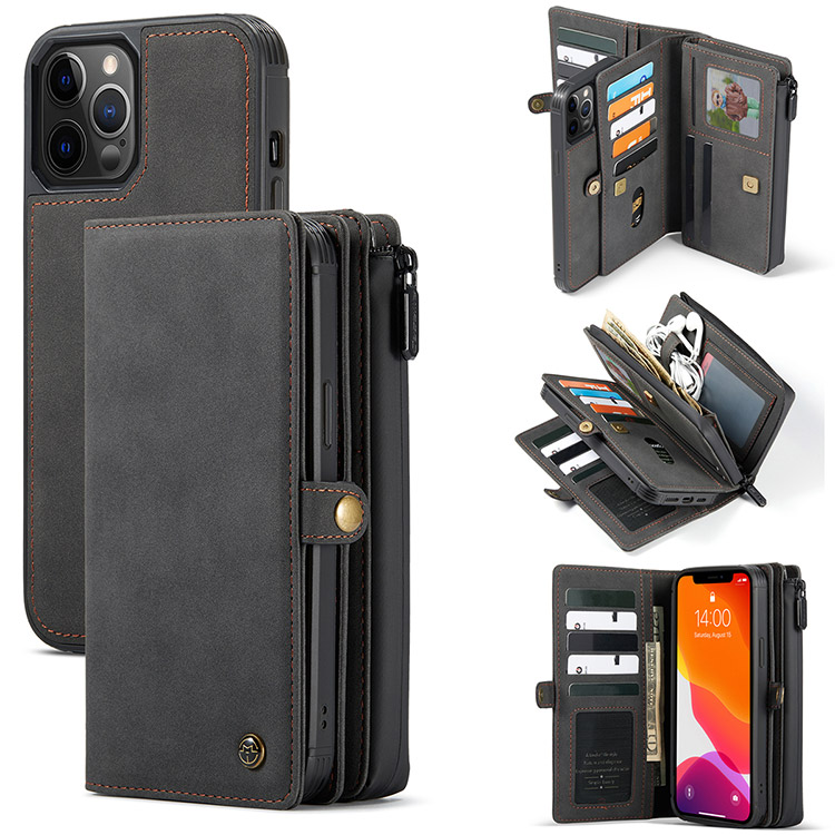ANIL Casebus Detachable Magnetic Wallet Phone Case, 15 Card Slots, High Capacity, Super Handmade Leather Zipper, Shockproof Case