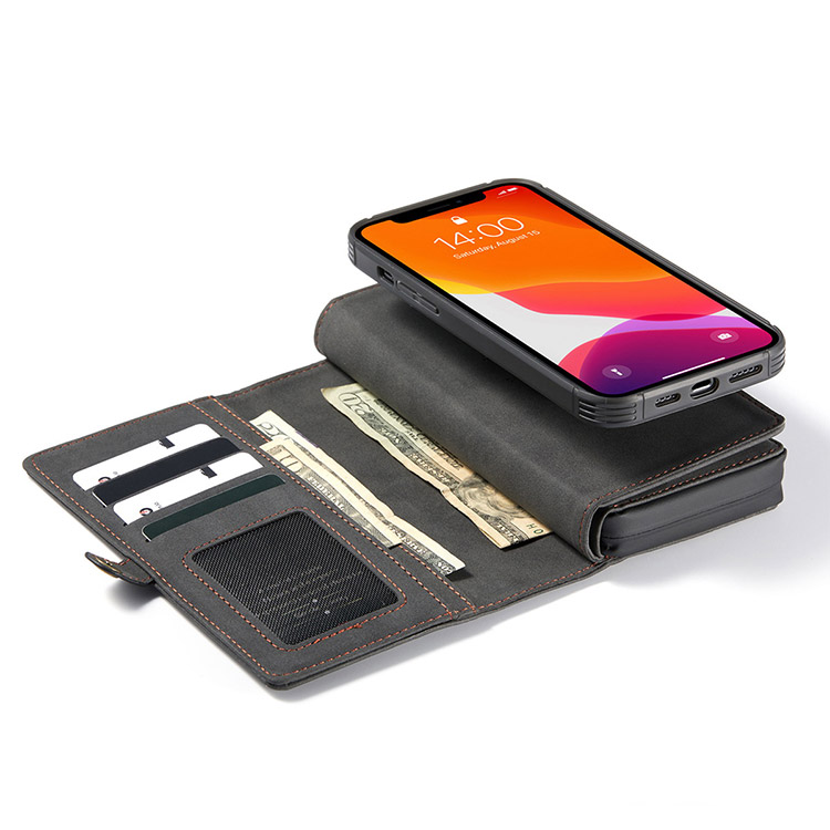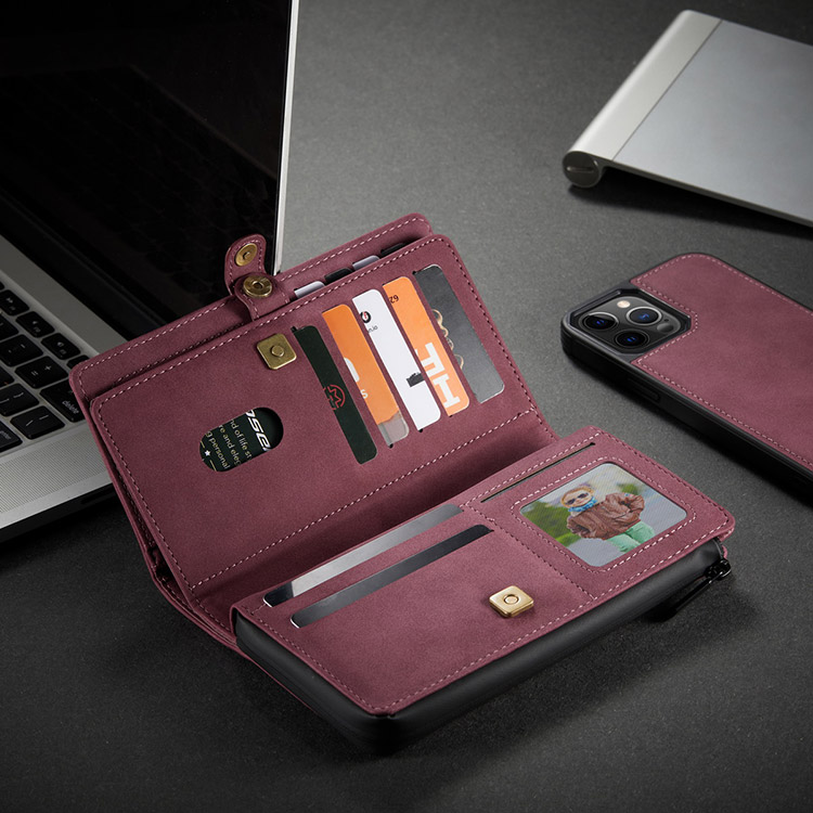 Casebus Classic Detachable Magnetic Wallet Phone Case, 11 Card Slots, 2 in 1, Leather Zipper, Folio Flip, Money Pocket Clutch Case