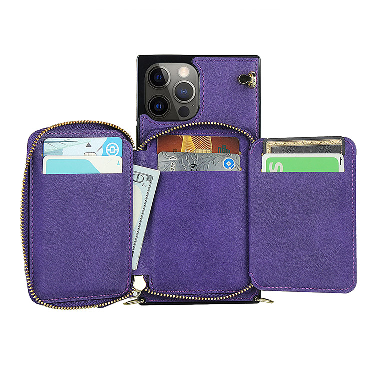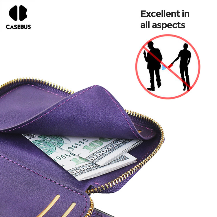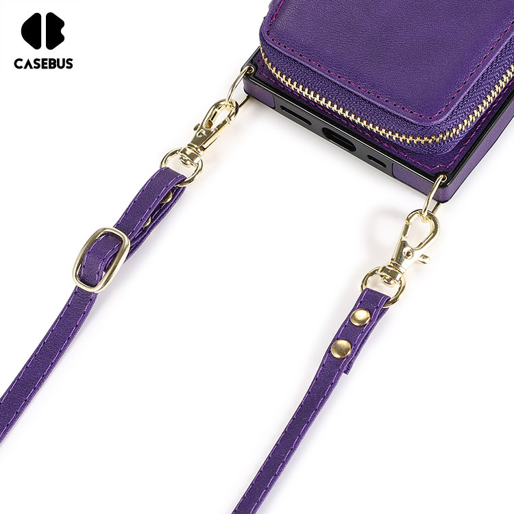 Casebus Flip Crossbody Wallet Case, Leather Zipper Purse, with Wrist Strap & Shoulder Strap