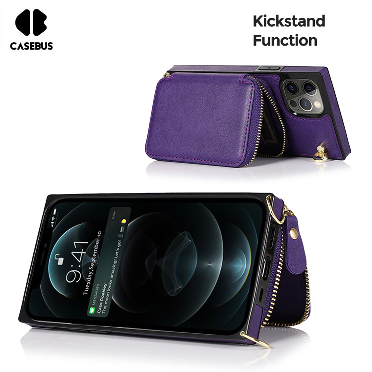 Casebus Classic Crossbody Wallet Phone Case, Wide Straps, Credit Card Holder, Zipper Pocket Purse Handbag, Kickstand Shockproof Case