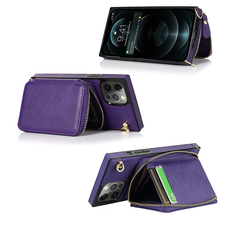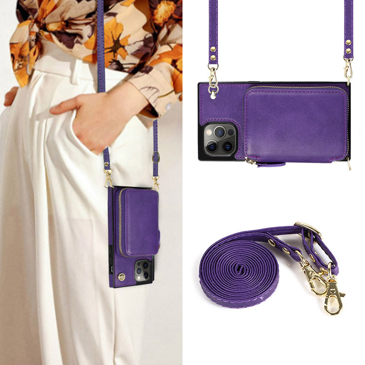 Casebus Crossbody Flip Wallet Phone Case, Leather Magnetic Card Holder Zipper Pocket Lanyard Strap Kickstand Shockproof Cover