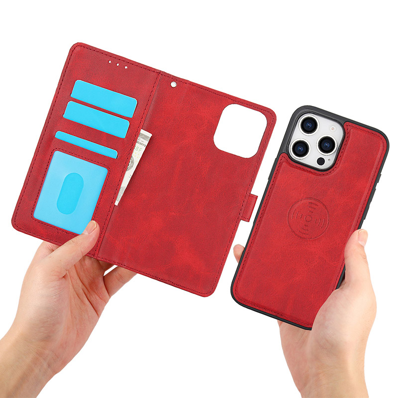 COURTNEY Casebus Detachable Wallet Phone Case, Magnetic Flip Kickstand, Premium Leather, with Wrist Strap, Shockproof Protective Cover