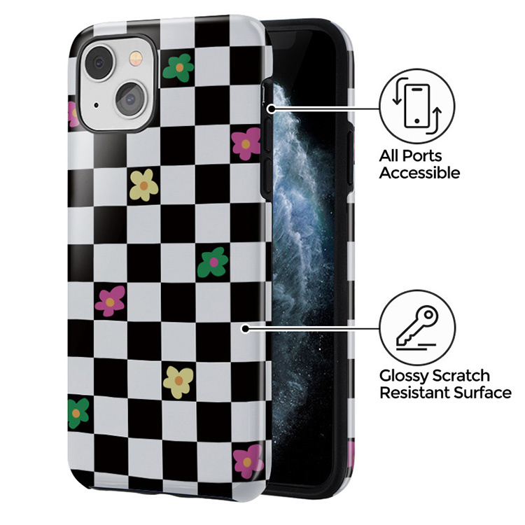Take time to relax with our Lunch Break - phone case. The playful addition of colorful retro flowers to the classical black and white checkered pattern will add that extra pop of color. It will bring that much-needed *oomph* to your phone. With this playful design, you can keep your phone cute and protected!