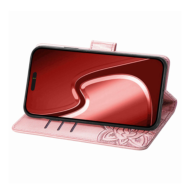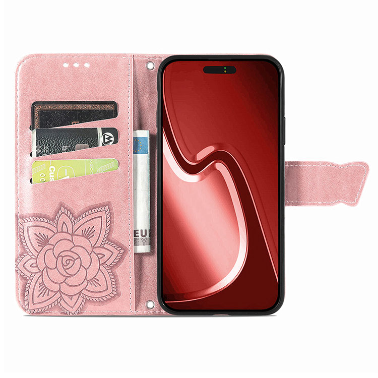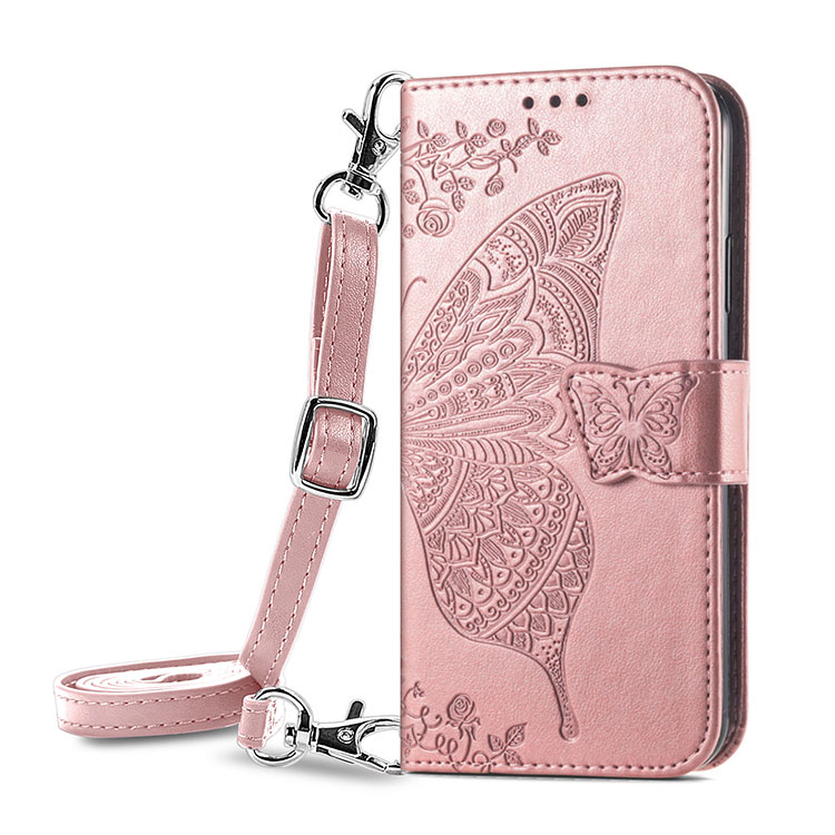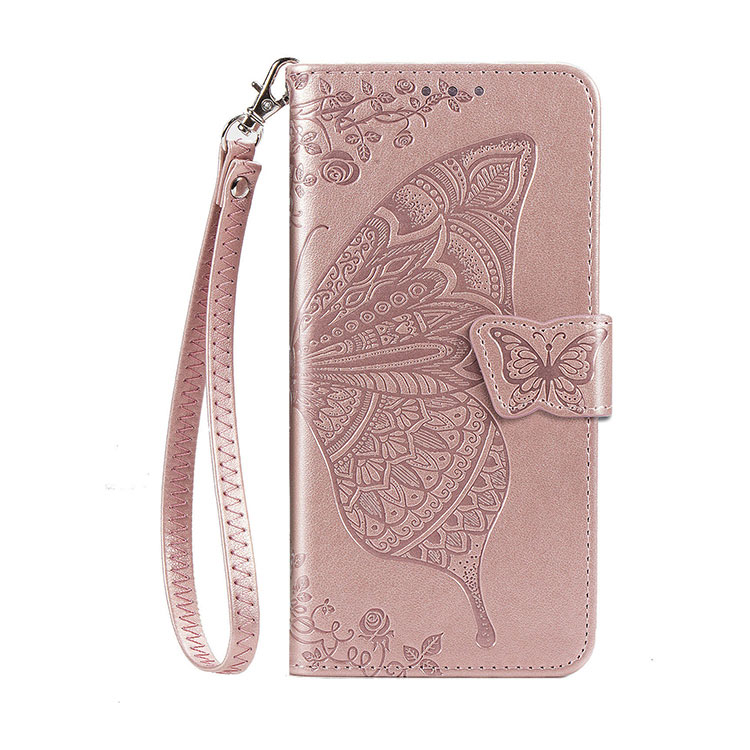 MAISIE Casebus Wallet Flip Phone Case, Emboss Butterfly Flower, Leather Protective Cover, with Wrist Strap & Crossbody Strap