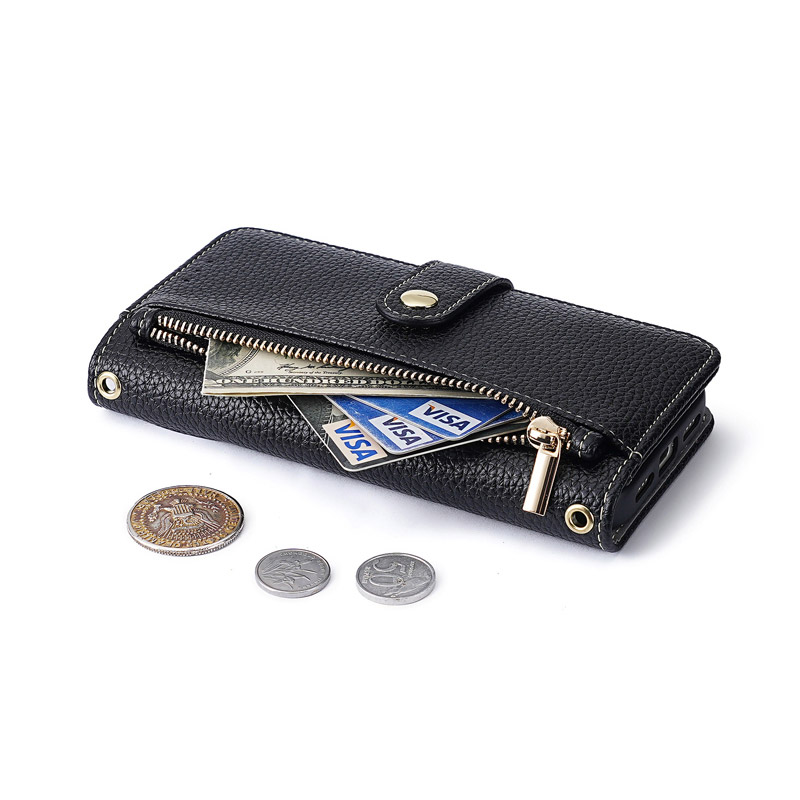 Casebus Classic Crossbody Wallet Phone Case, Premium Leather, Credit Card Holder, Zipper Pocket Purse Handbag, Kickstand Shockproof Case