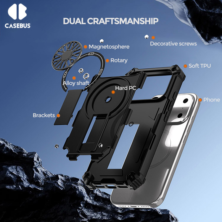 GALE Casebus Heavy Duty Phone Case, Compatible with MagSafe, Built in Hidden Folding Stand, Shockproof Protection