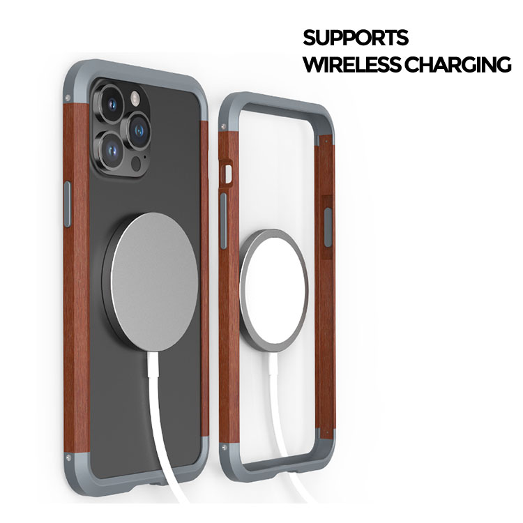 MARKUS II Casebus Classic Slim Wood Phone Case Compatible With MagSafe, Supports Wireless Charging, Wooden & Aluminum Bumper, Metal Frame Practical Shockproof Cover