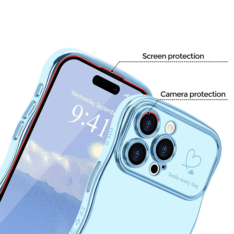 JENNIFER Casebus Luxury Plating Phone Case, Heart Wave Shaped Curled Edge Design, Shockproof Protective Cover