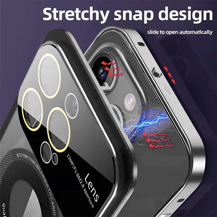 PANOS Casebus Full Camera Lens Protector Phone Case, Compatible with MagSafe, Open In One Step Magnetic Bouncing Buckles & Shockproof Explosion Proof Frosted Back Cover