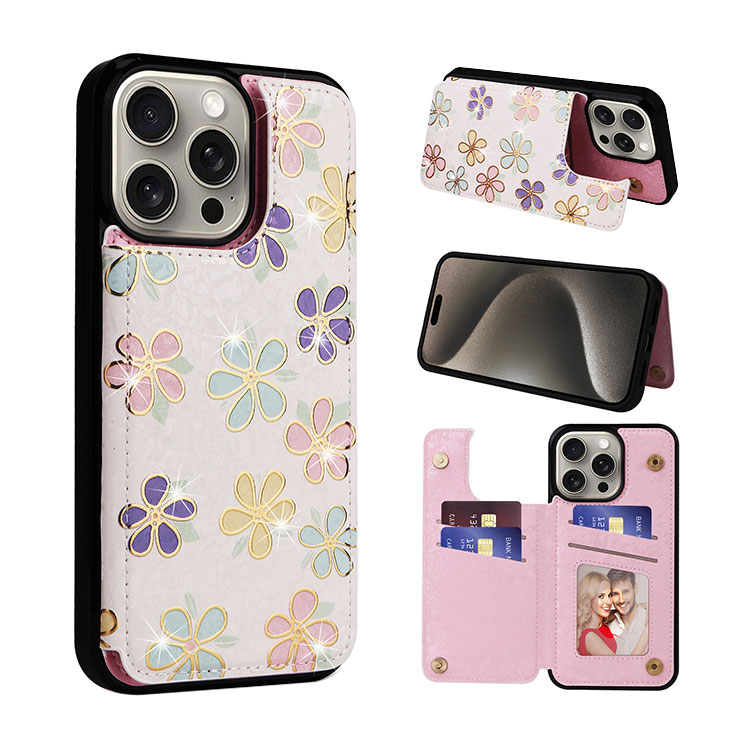 ODILON Casebus Wallet Phone Case, Leather, Flower Pattern Design, Magnetic Clasp Card Holder Shockproof Cover