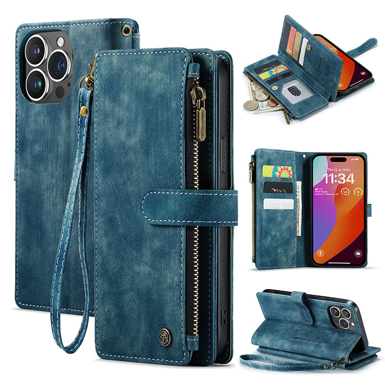 Casebus Classic Flipper Wallet Phone Case, Premium Retro Leather, Folio Zipper, Magnetic Closure, Stand Holder with Wrist Strap Shockproof Case