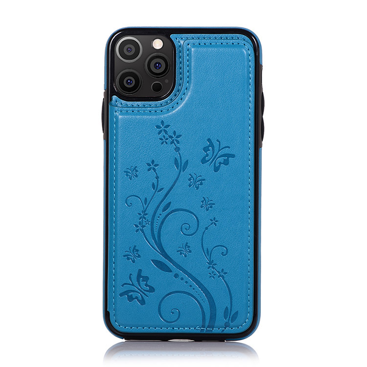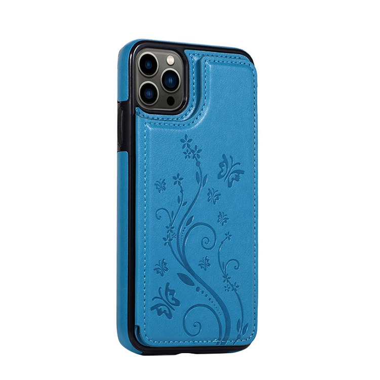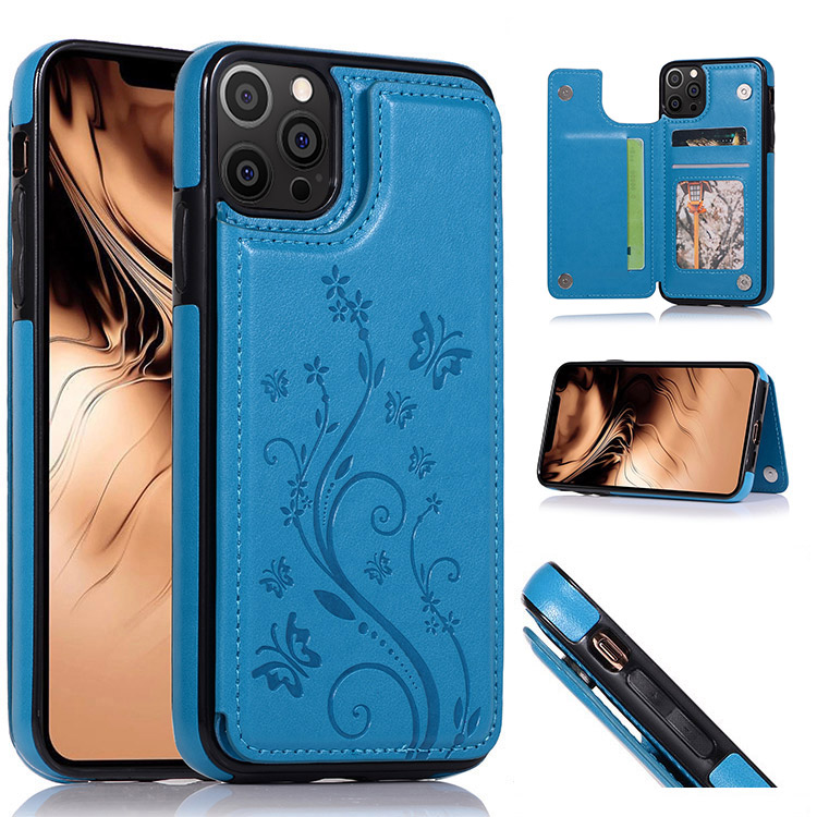 SOMMER Casebus Classic Buckle Wallet Phone Case, Embossed Flower, Credit Card Holder, Leather, Kickstand, Double Magnetic Clasp, Shockproof Case