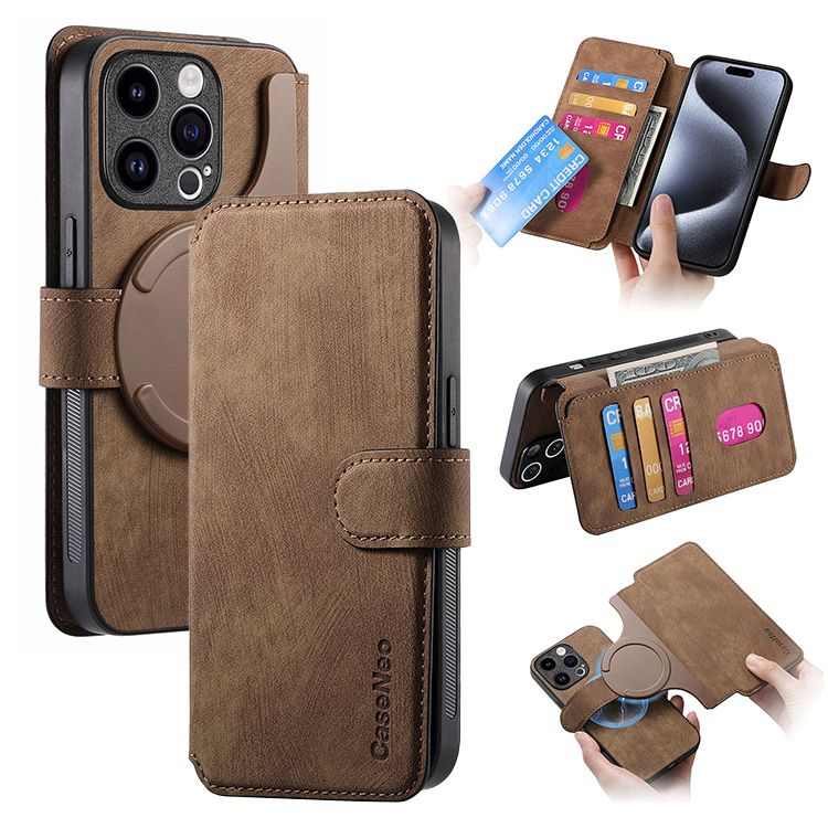 CASSIDY Casebus Retro Magnetic Wallet Case, Support Magsafe, Detachable 2In1 Folio Flip Cover, with Card Slots