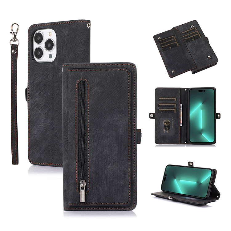Casebus Flip Crossbody Wallet Case, Leather Zipper Purse, with Wrist Strap & Shoulder Strap