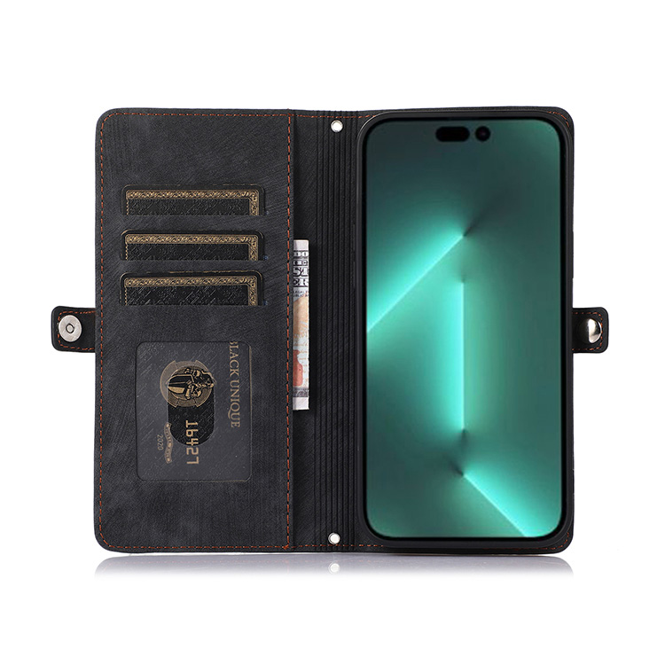 TIBERIU Casebus Crossbody Wallet Phone Case, Durable Leather, Magnetic Flip Zipper Card Holder, with Shoulder & Wristlet Strap