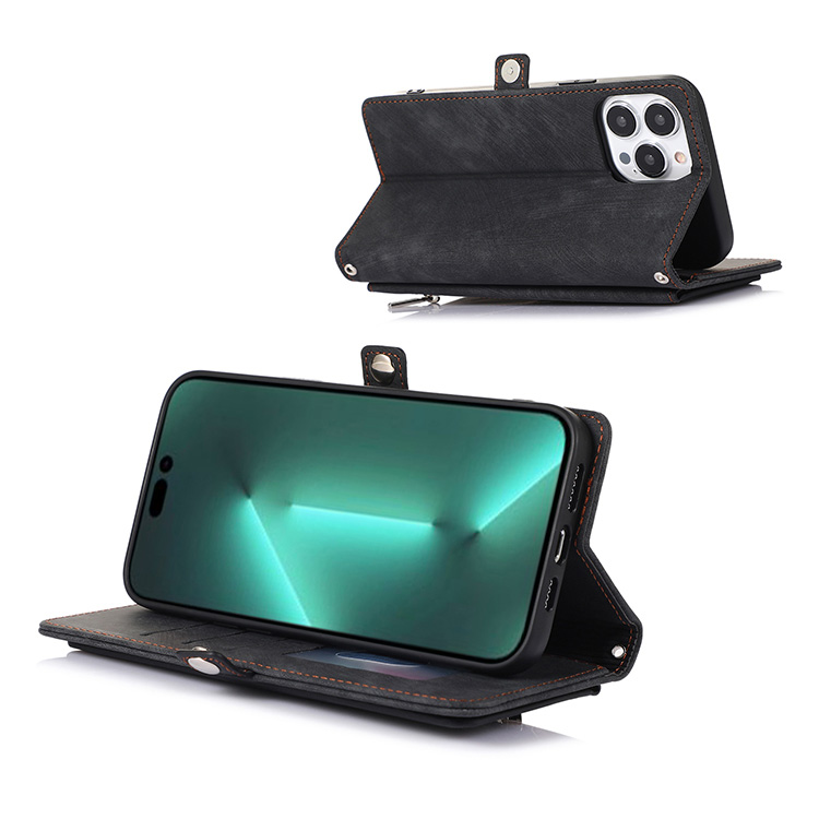 Casebus Classic Crossbody Wallet Phone Case, Premium Leather, Credit Card Holder, Zipper Pocket Purse Handbag, Kickstand Shockproof Case