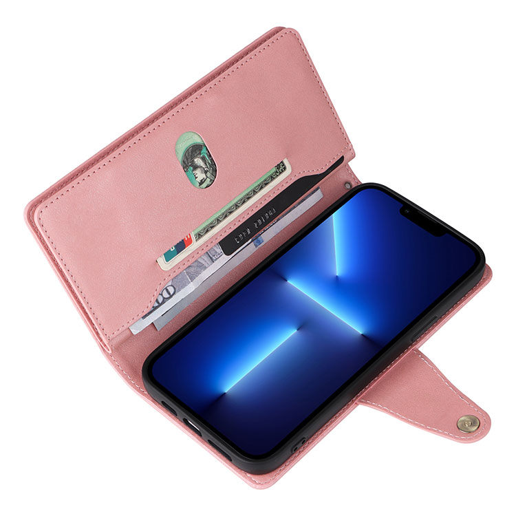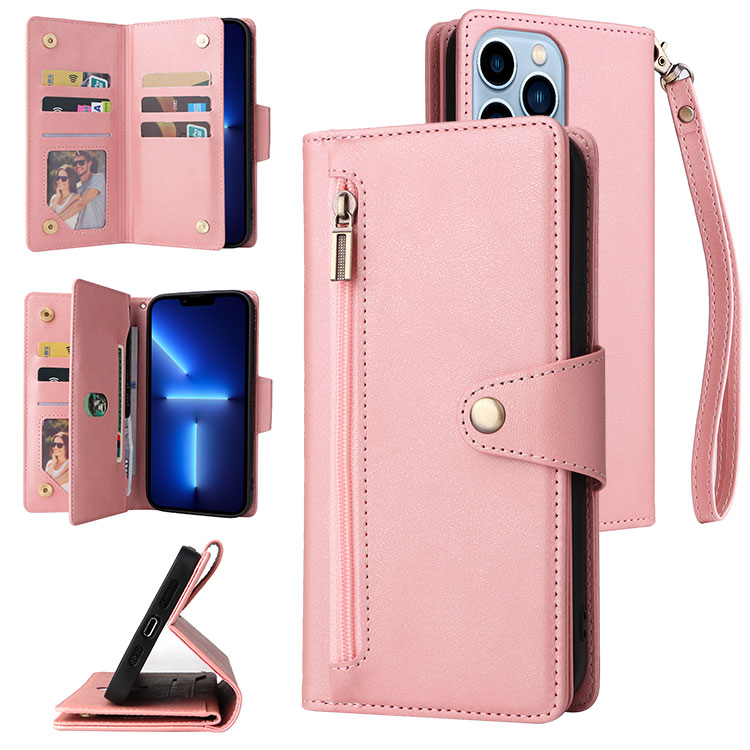 Casebus Multi Functional Wallet Phone Case, 14 Card Slots 3 Purse 1 Zipper 1 Wrist Band 1 Metal Buckle, Wrist Strap Clutch Magnetic Detachable