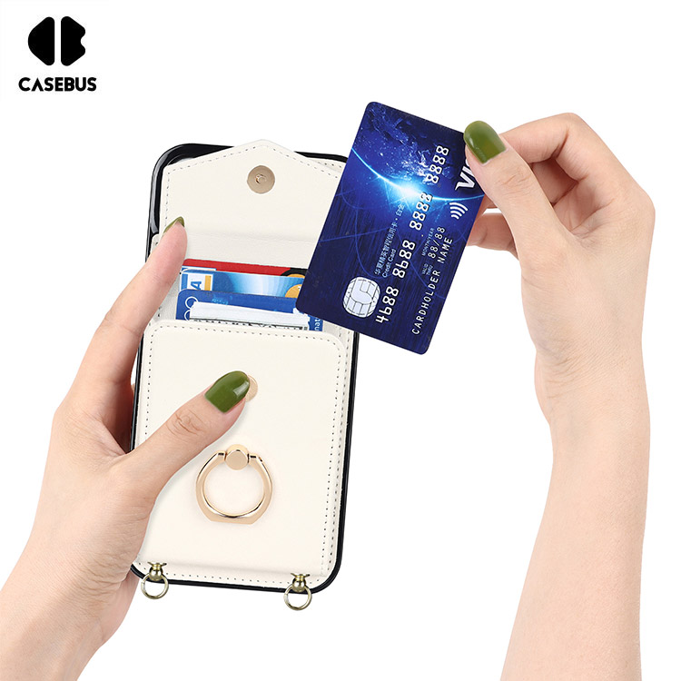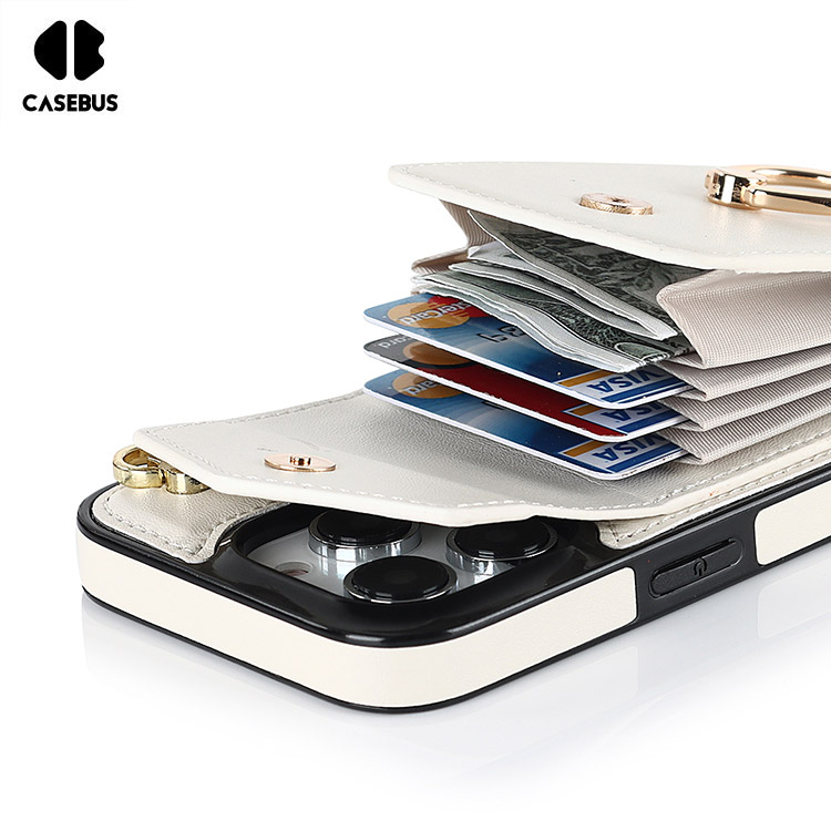 Casebus Crossbody Wallet Phone Case, With Detachable Strap Lanyard Magnetic Closure Credit Card Holder Leather Kickstand Shockproof Cover